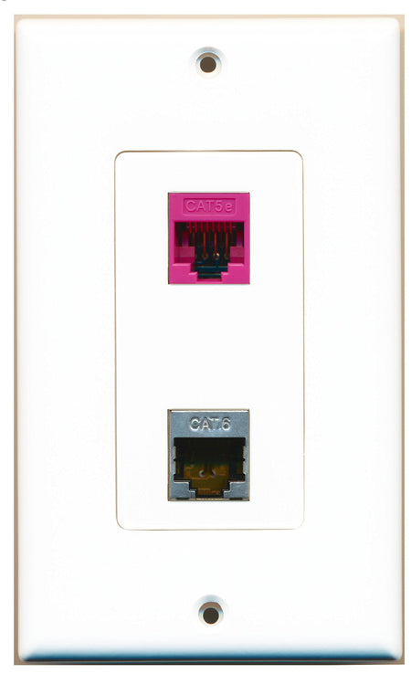 RiteAV 1 Port Shielded Cat6 Ethernet 1 Port Cat5e Ethernet Pink Wall Plate OVERSIZED White