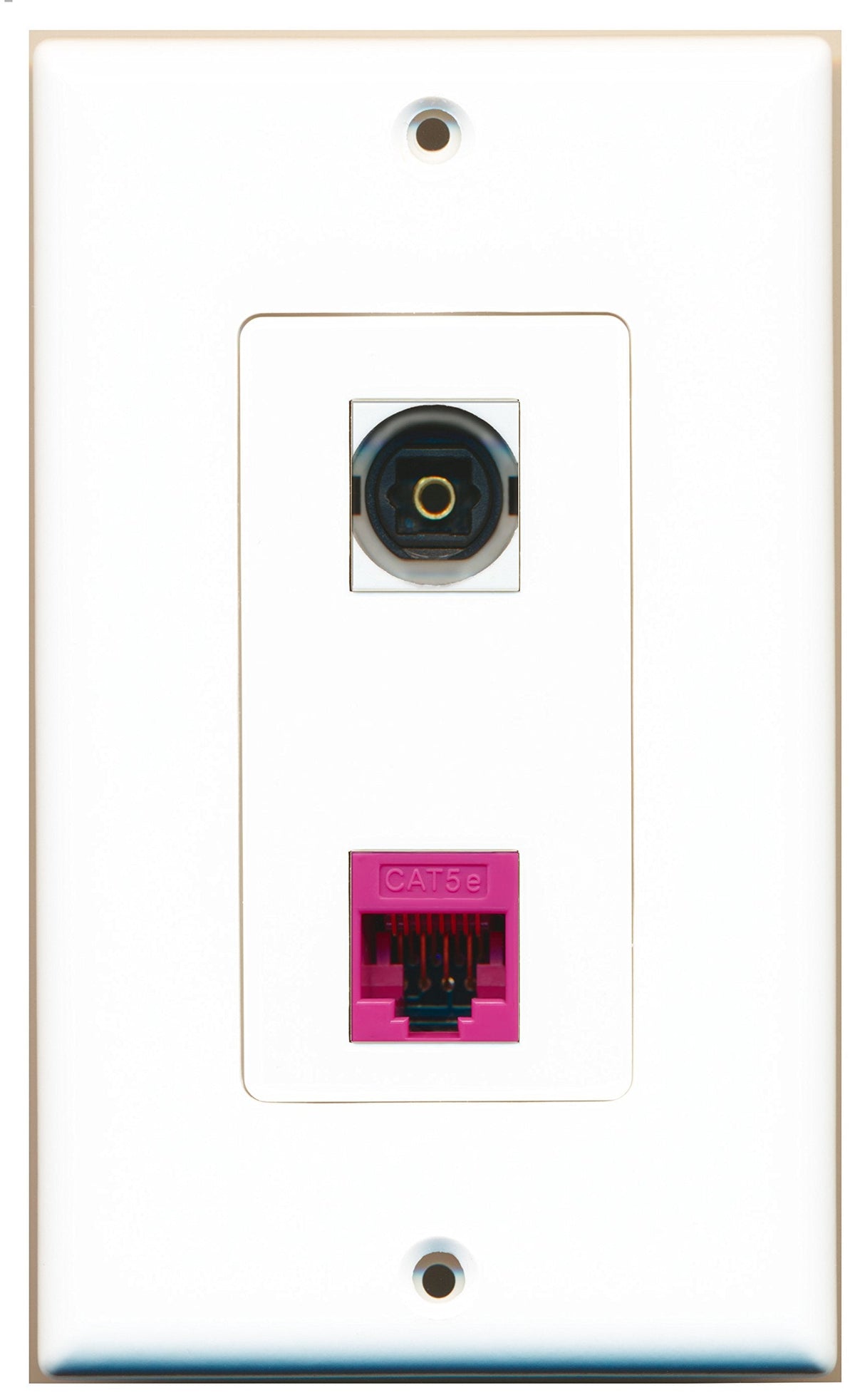 RiteAV 1 Port Toslink Digital Audio 1 Port Cat5e Ethernet Pink Wall Plate OVERSIZED White