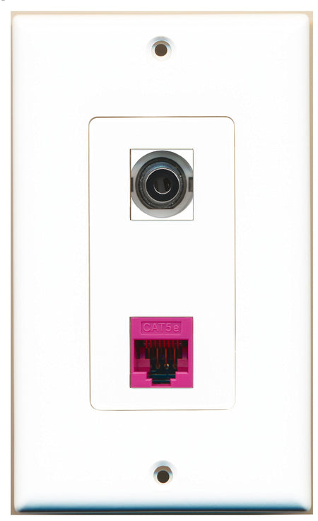 RiteAV 1 Port 3.5mm 1 Port Cat5e Ethernet Pink Wall Plate OVERSIZED White