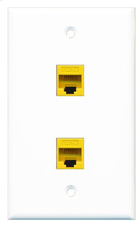RiteAV - 2 Port Cat5e Ethernet Yellow Wall Plate White - Bracket Included