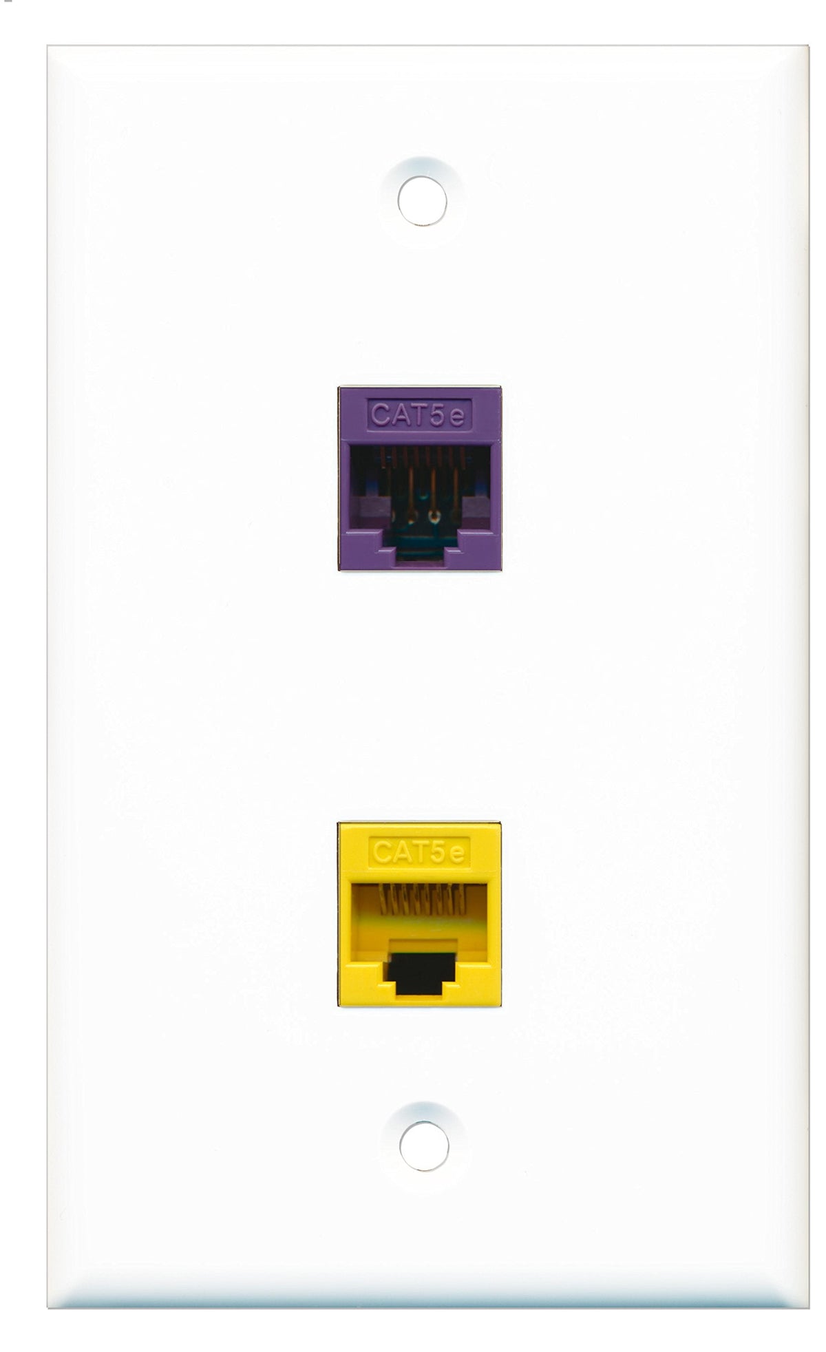 RiteAV - 1 Port Cat5e Ethernet Yellow - 1 Port Cat5e Ethernet Purple Wall Plate White - Bracket Included
