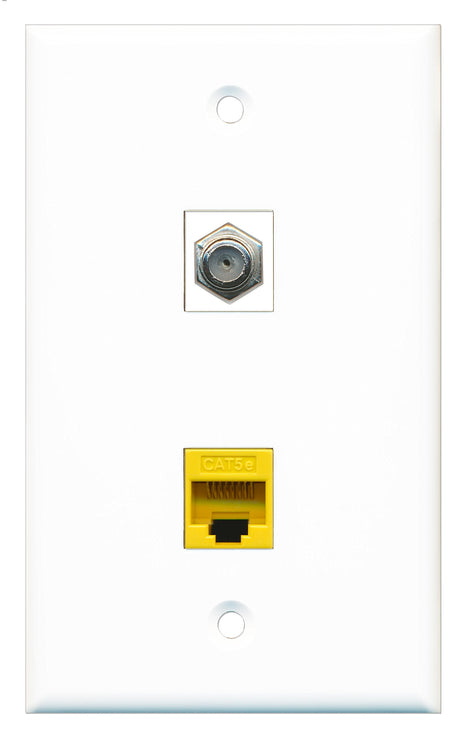 RiteAV - 1 Port Coax Port Cable TV F Type - 1 Port Cat5e Ethernet Yellow Wall Plate White - Bracket Included