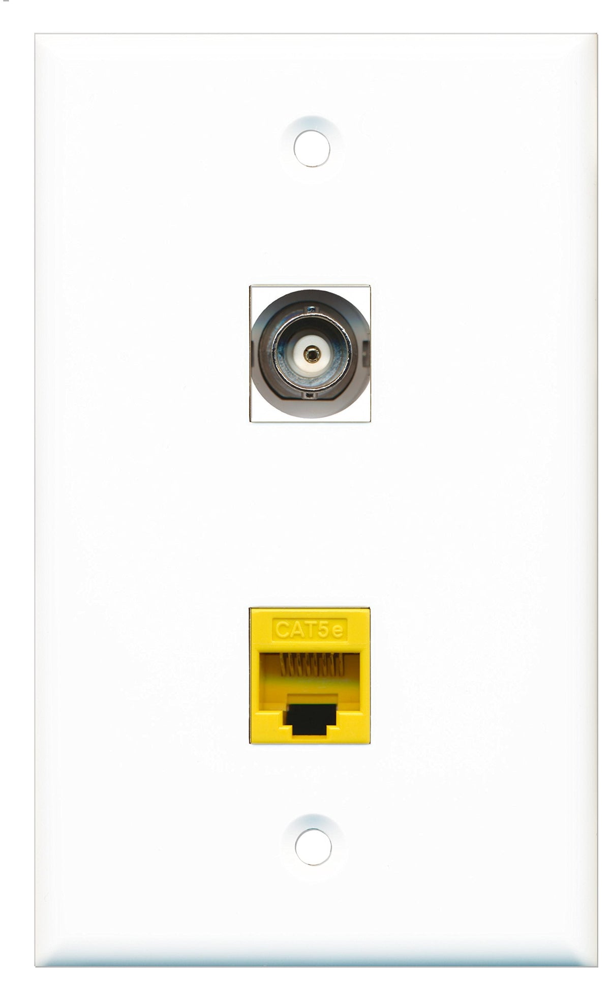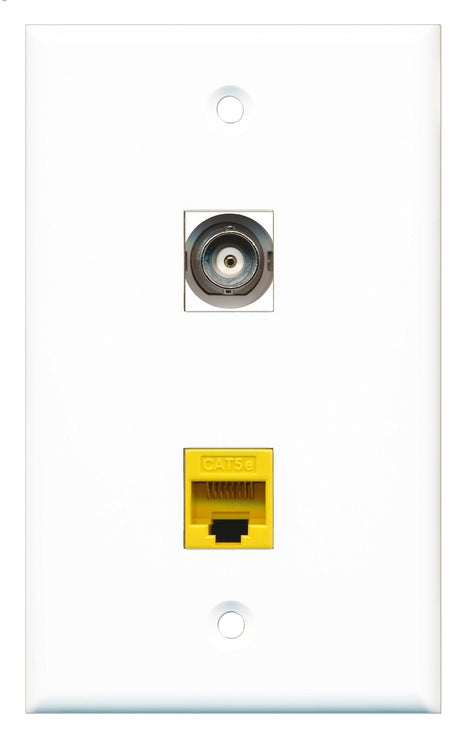 RiteAV - 1 Port BNC - 1 Port Cat5e Ethernet Yellow Wall Plate White - Bracket Included