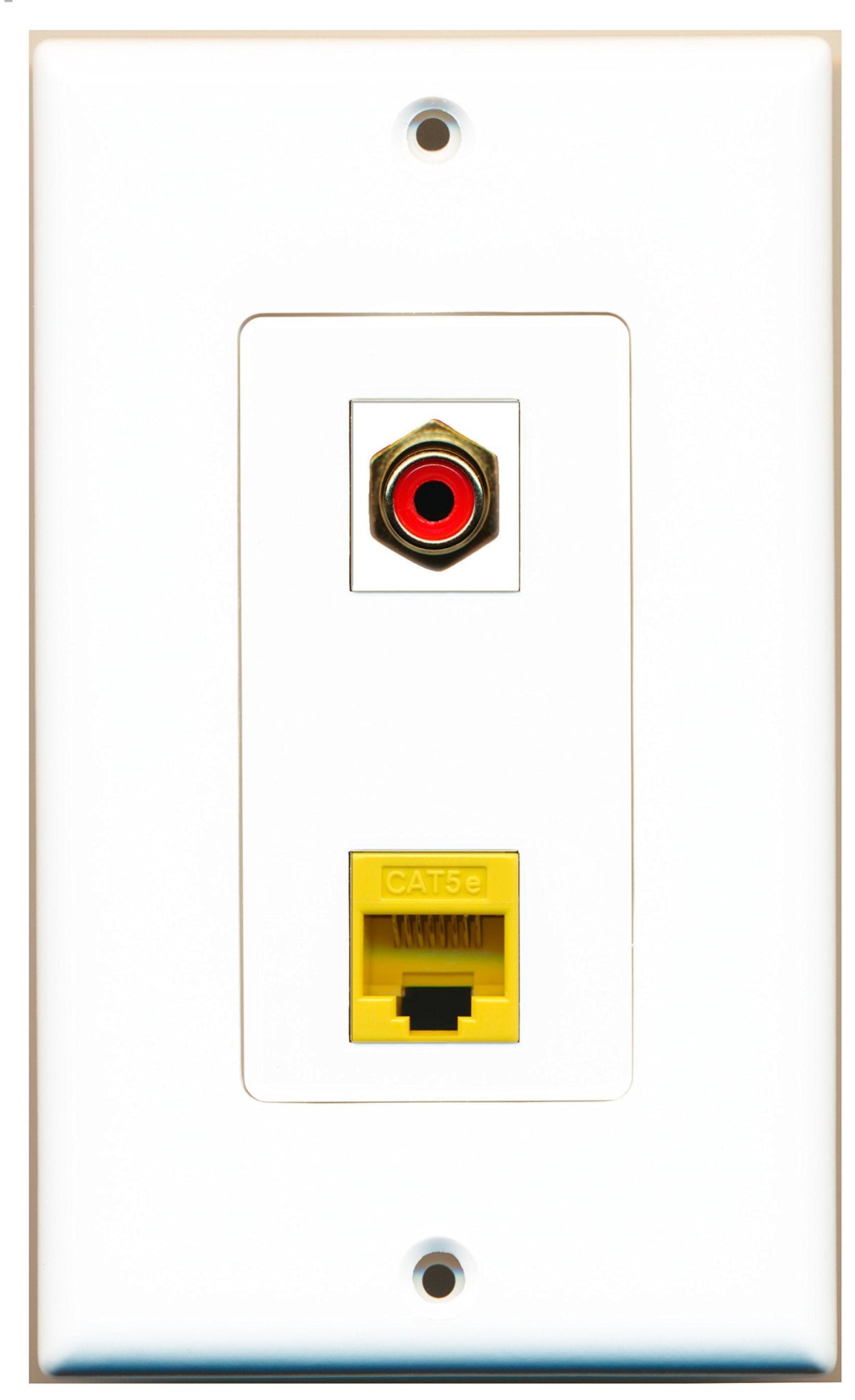 RiteAV 1 Port RCA Red 1 Port Cat5e Ethernet Yellow Wall Plate OVERSIZED White