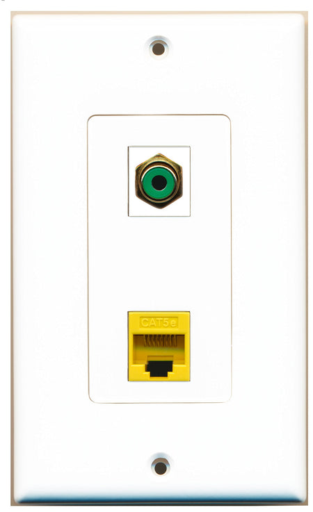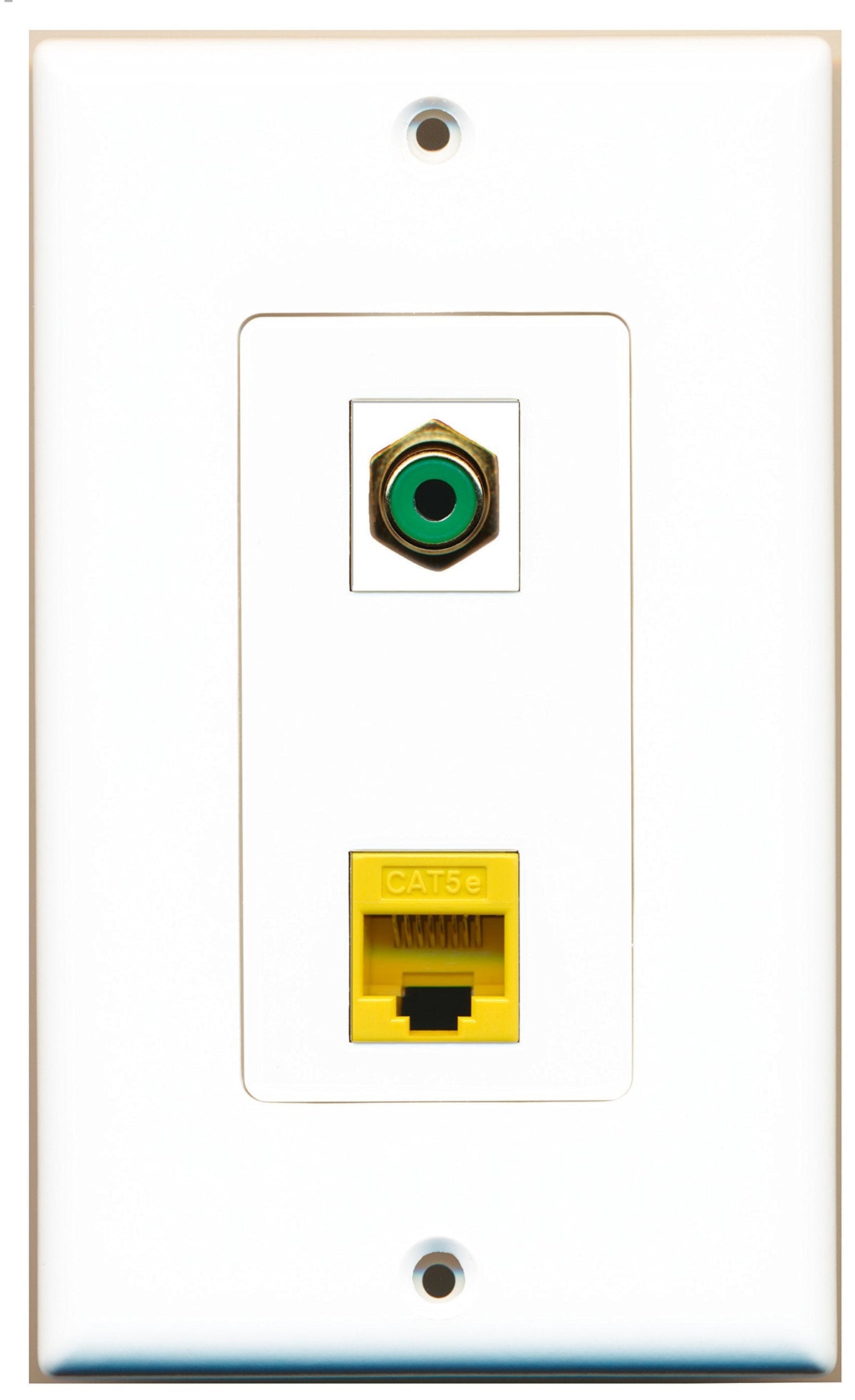 RiteAV 1 Port RCA Green 1 Port Cat5e Ethernet Yellow Wall Plate OVERSIZED White