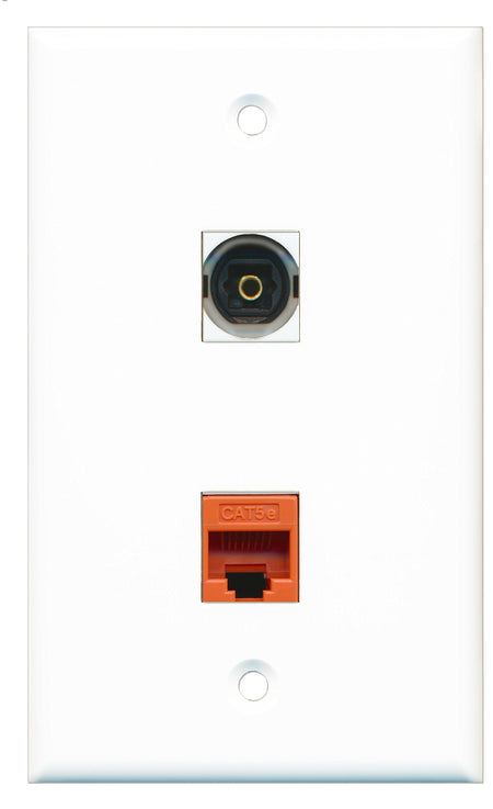 RiteAV - 1 Port Toslink Digital Audio - 1 Port Cat5e Ethernet Orange Wall Plate White - Bracket Included