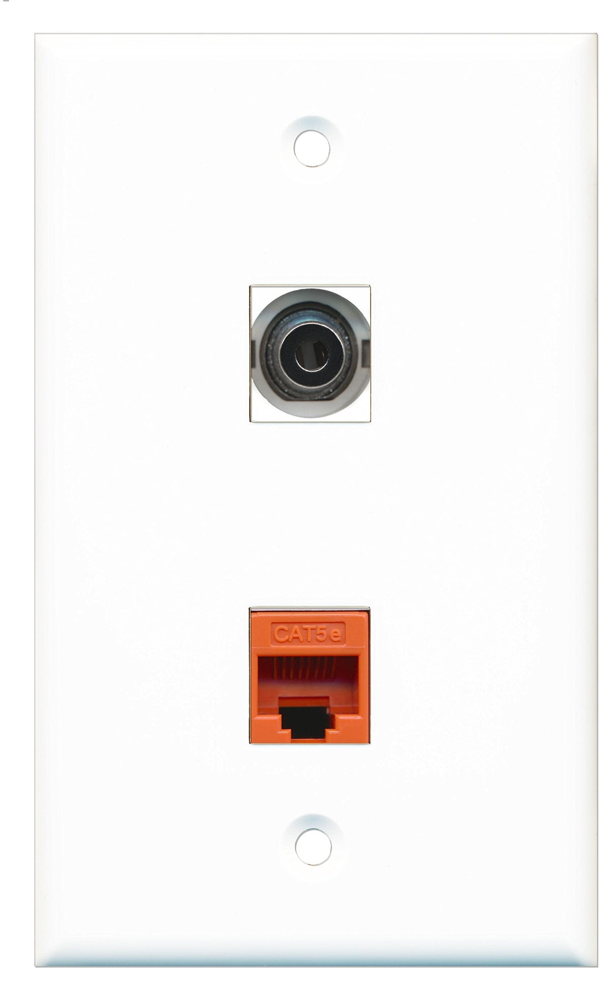 RiteAV - 1 Port 3.5mm - 1 Port Cat5e Ethernet Orange Wall Plate White - Bracket Included