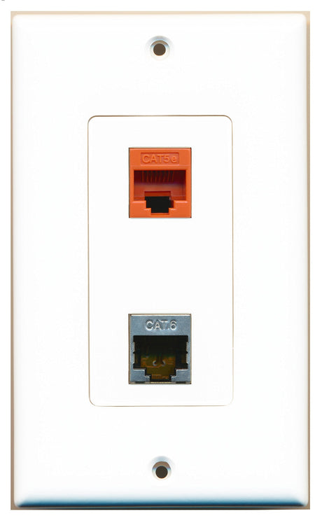 RiteAV 1 Port Shielded Cat6 Ethernet 1 Port Cat5e Ethernet Orange Wall Plate OVERSIZED White