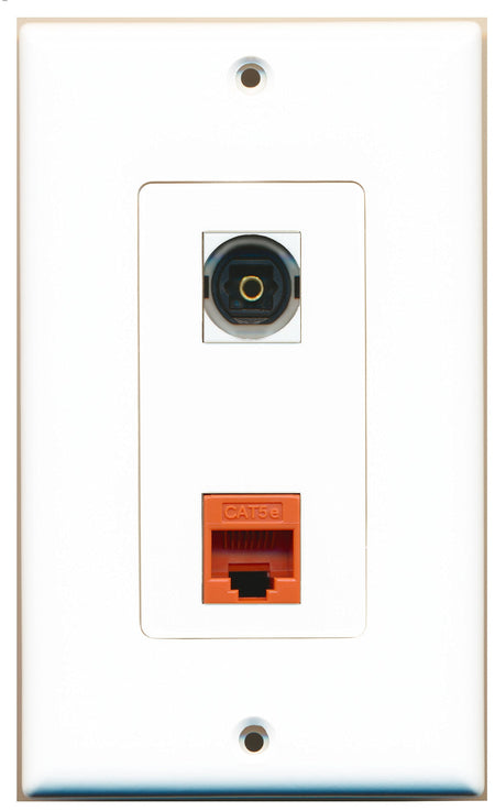 RiteAV 1 Port Toslink Digital Audio 1 Port Cat5e Ethernet Orange Wall Plate OVERSIZED White