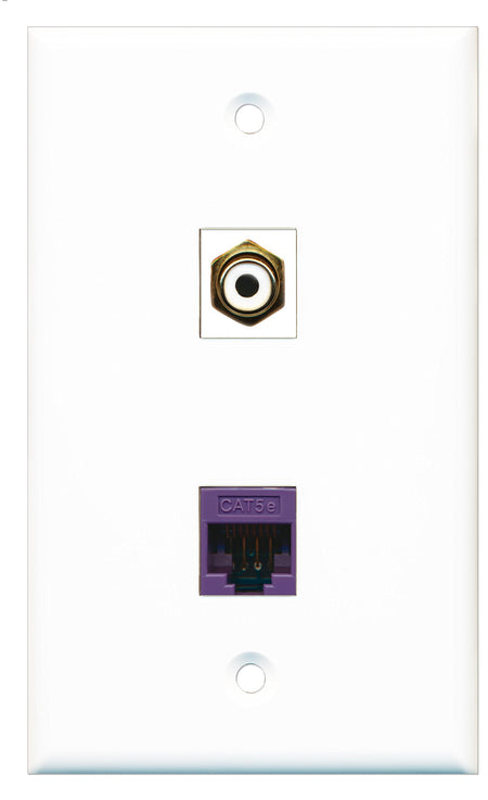 RiteAV - 1 Port RCA White - 1 Port Cat5e Ethernet Purple Wall Plate White - Bracket Included