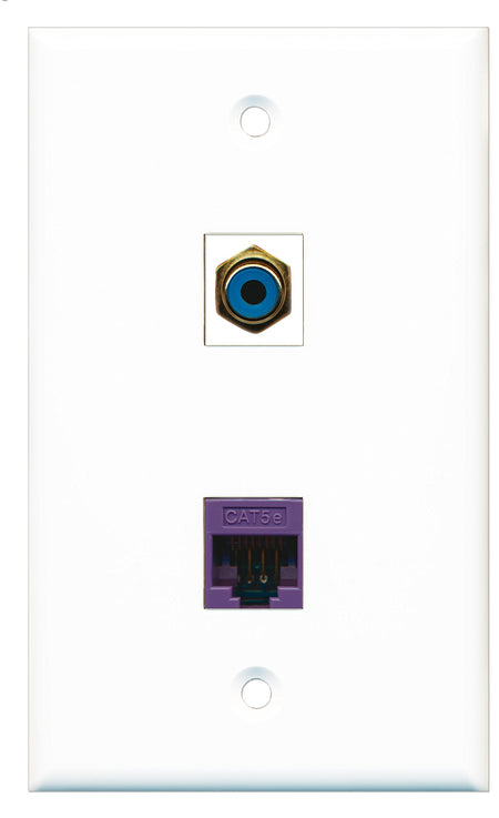 RiteAV - 1 Port RCA Blue - 1 Port Cat5e Ethernet Purple Wall Plate White - Bracket Included