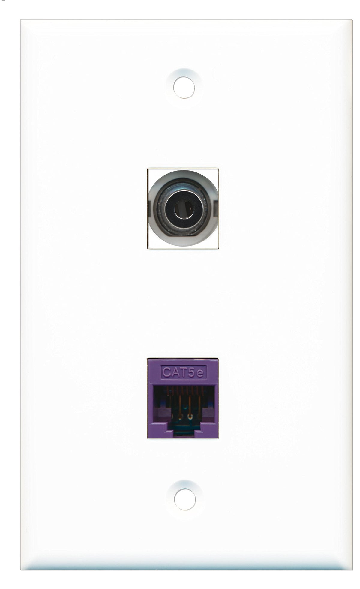 RiteAV - 1 Port 3.5mm - 1 Port Cat5e Ethernet Purple Wall Plate White - Bracket Included