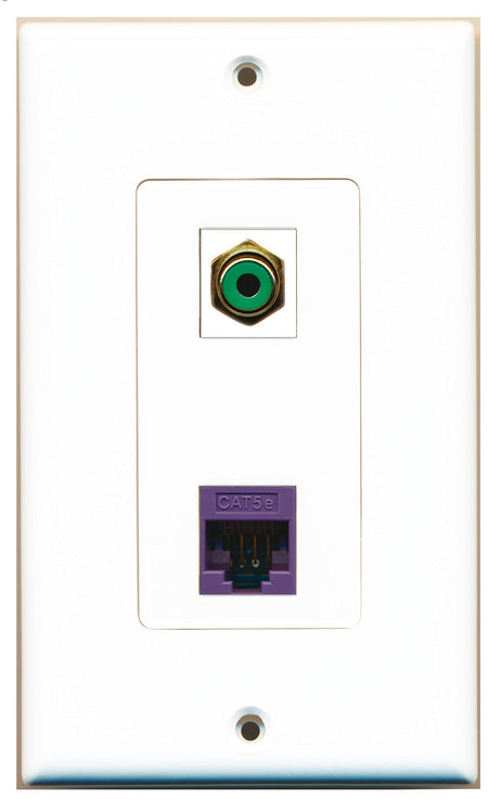 RiteAV 1 Port RCA Green 1 Port Cat5e Ethernet Purple Wall Plate OVERSIZED White
