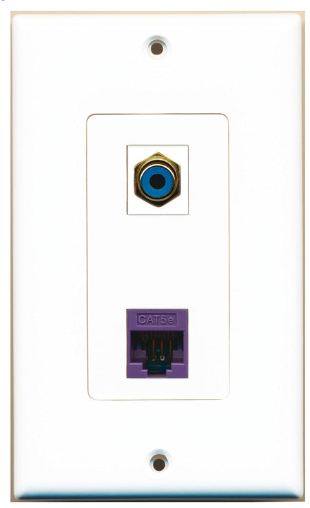 RiteAV 1 Port RCA Blue 1 Port Cat5e Ethernet Purple Wall Plate OVERSIZED White