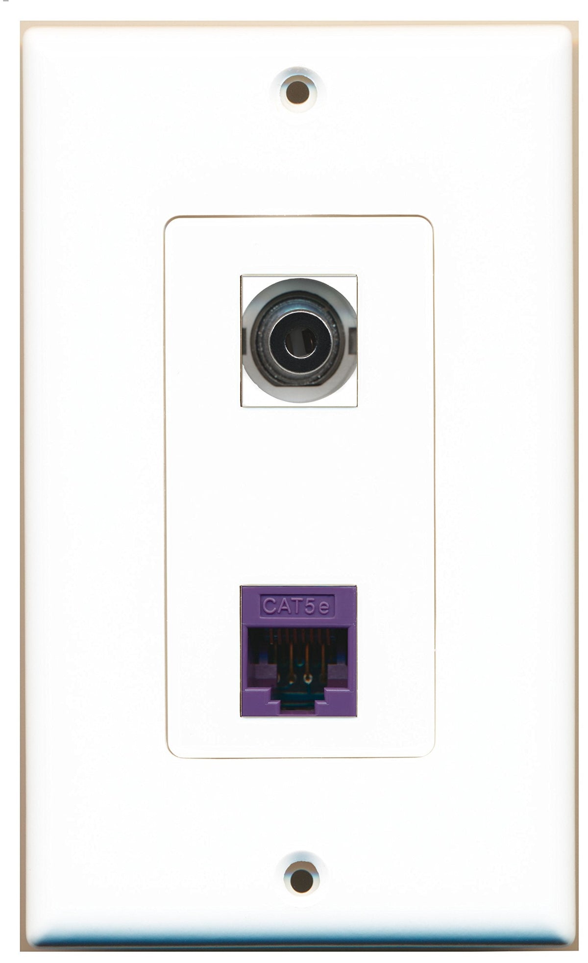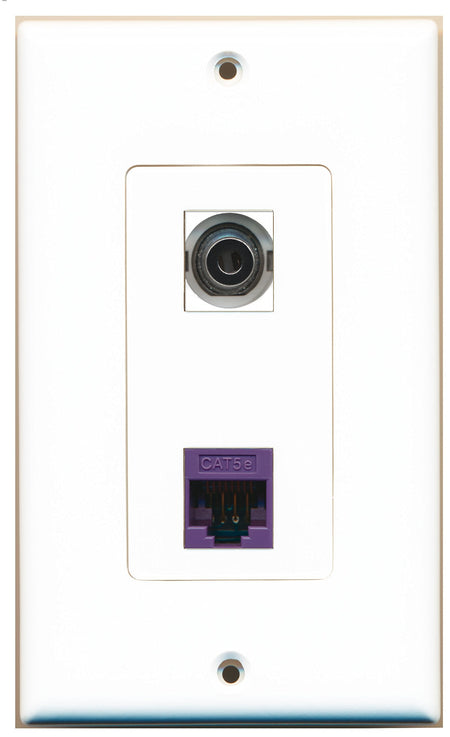 RiteAV 1 Port 3.5mm 1 Port Cat5e Ethernet Purple Wall Plate Oversized White