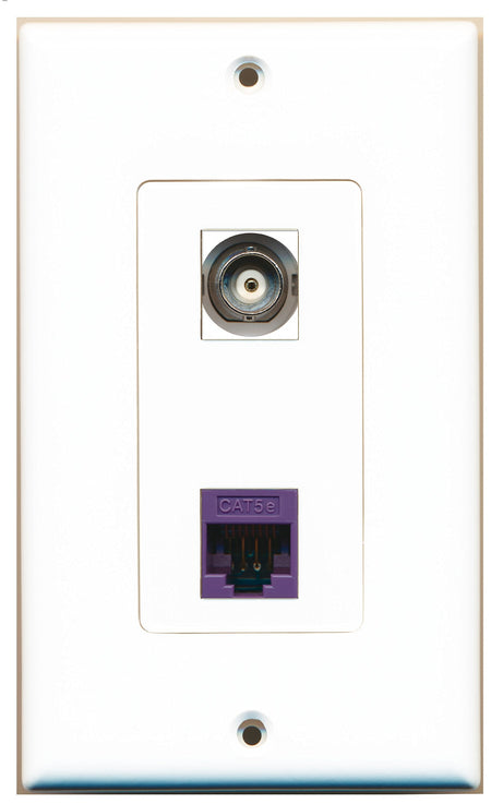 RiteAV 1 Port BNC 1 Port Cat5e Ethernet Purple Wall Plate OVERSIZED White