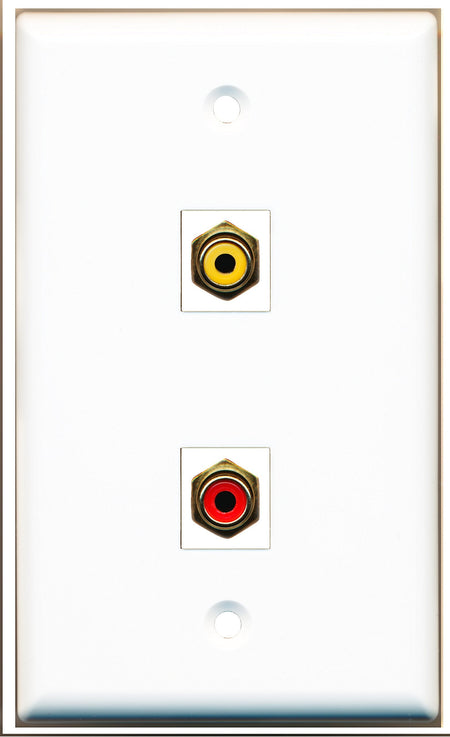 RiteAV - 1 Port RCA Red - 1 Port RCA Yellow Wall Plate White - Bracket Included