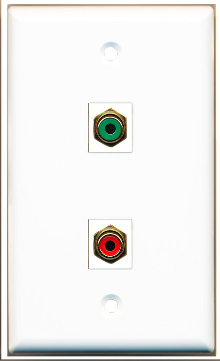 RiteAV - 1 Port RCA Red - 1 Port RCA Green Wall Plate White - Bracket Included