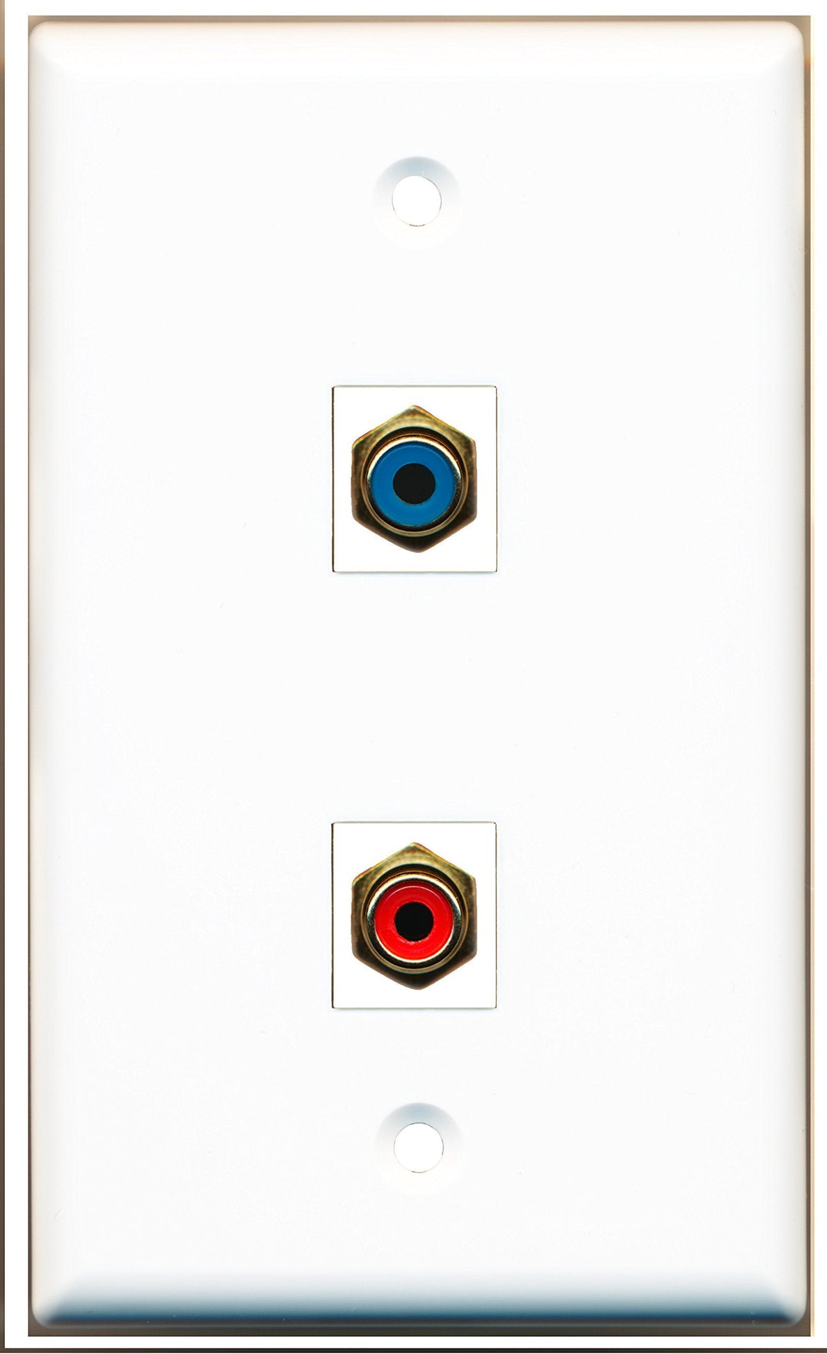 RiteAV - 1 Port RCA Red - 1 Port RCA Blue Wall Plate White - Bracket Included