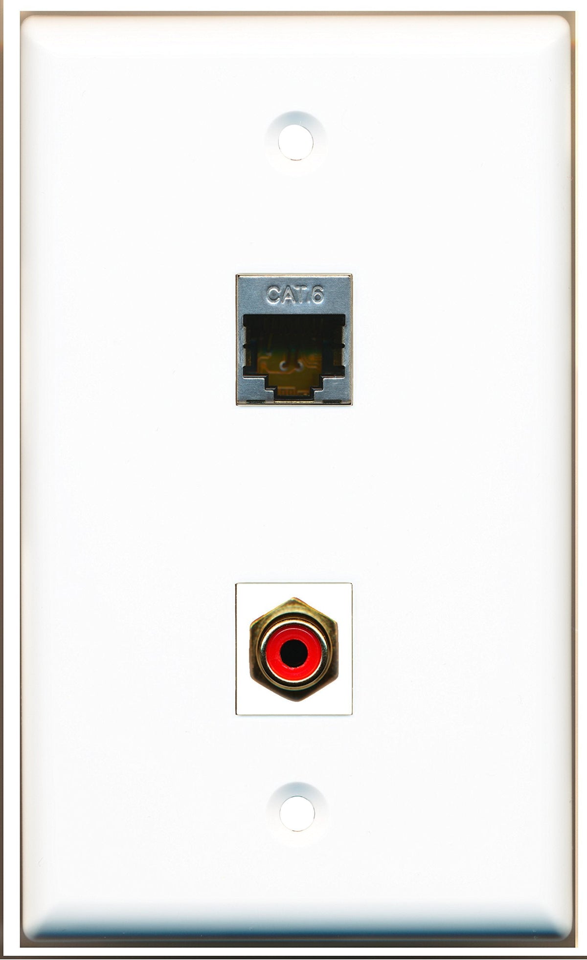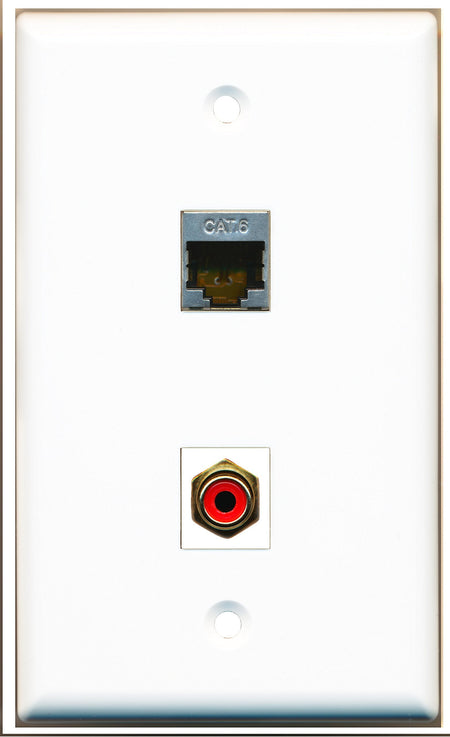 RiteAV - 1 Port RCA Red - 1 Port Shielded Cat6 Ethernet Wall Plate White - Bracket Included