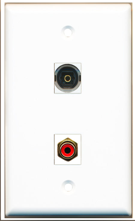 RiteAV - 1 Port RCA Red - 1 Port Toslink Digital Audio Wall Plate White - Bracket Included