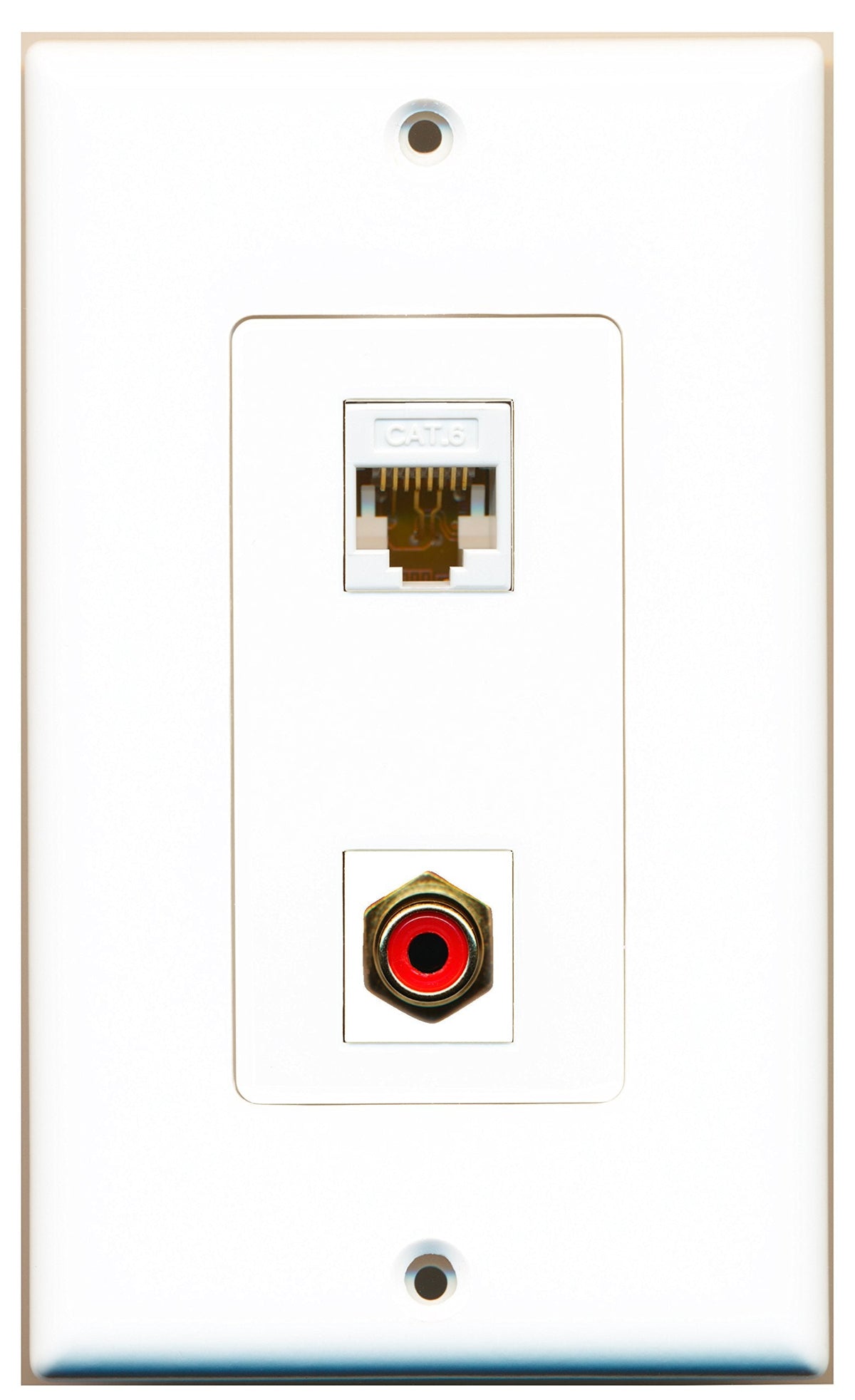RiteAV 1 Port RCA Red 1 Port Cat6 Ethernet White Wall Plate OVERSIZED White