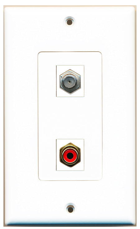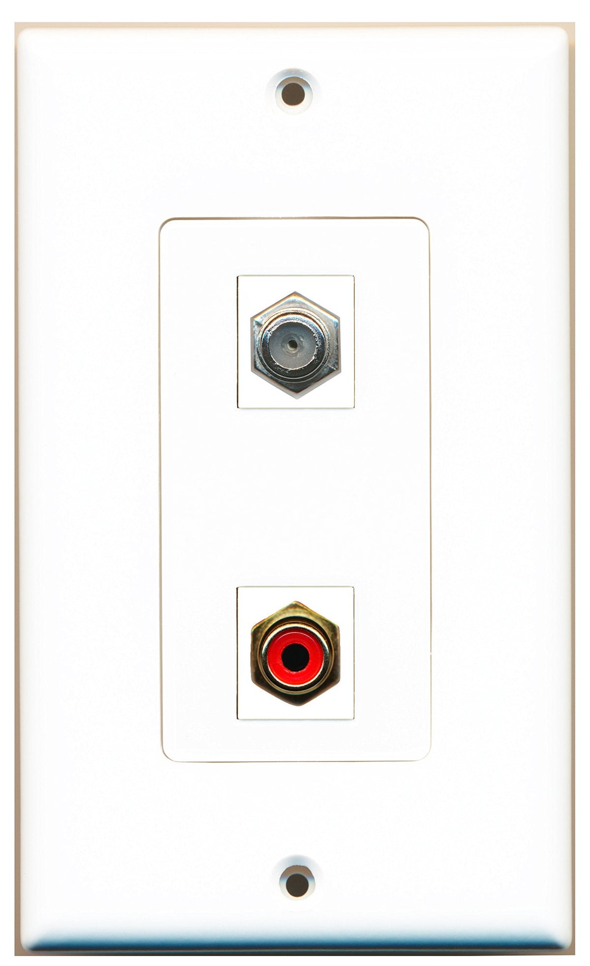 RiteAV 1 Port RCA Red 1 Port Coax Port Cable TV F Type Wall Plate OVERSIZED White