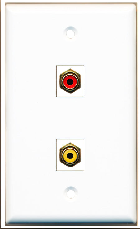 RiteAV - 1 Port RCA Red 1 Port RCA Yellow Wall Plate White - Bracket Included