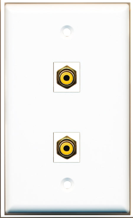 RiteAV - 2 Port RCA Yellow Wall Plate White - Bracket Included