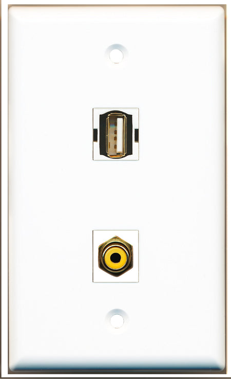 RiteAV - 1 Port RCA Yellow - 1 Port USB A-A Wall Plate White - Bracket Included