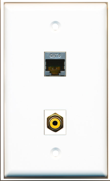 RiteAV - 1 Port RCA Yellow - 1 Port Shielded Cat6 Ethernet Wall Plate White - Bracket Included