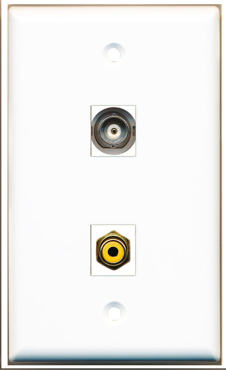 RiteAV - 1 Port RCA Yellow - 1 Port BNC Wall Plate White - Bracket Included