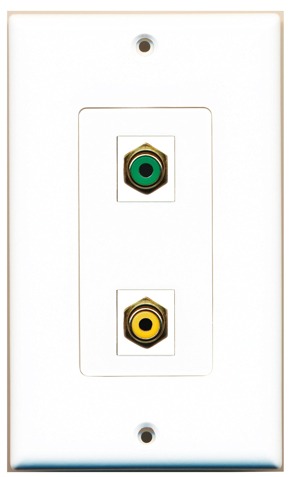 RiteAV 1 Port RCA Yellow 1 Port RCA Green Wall Plate OVERSIZED White
