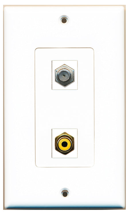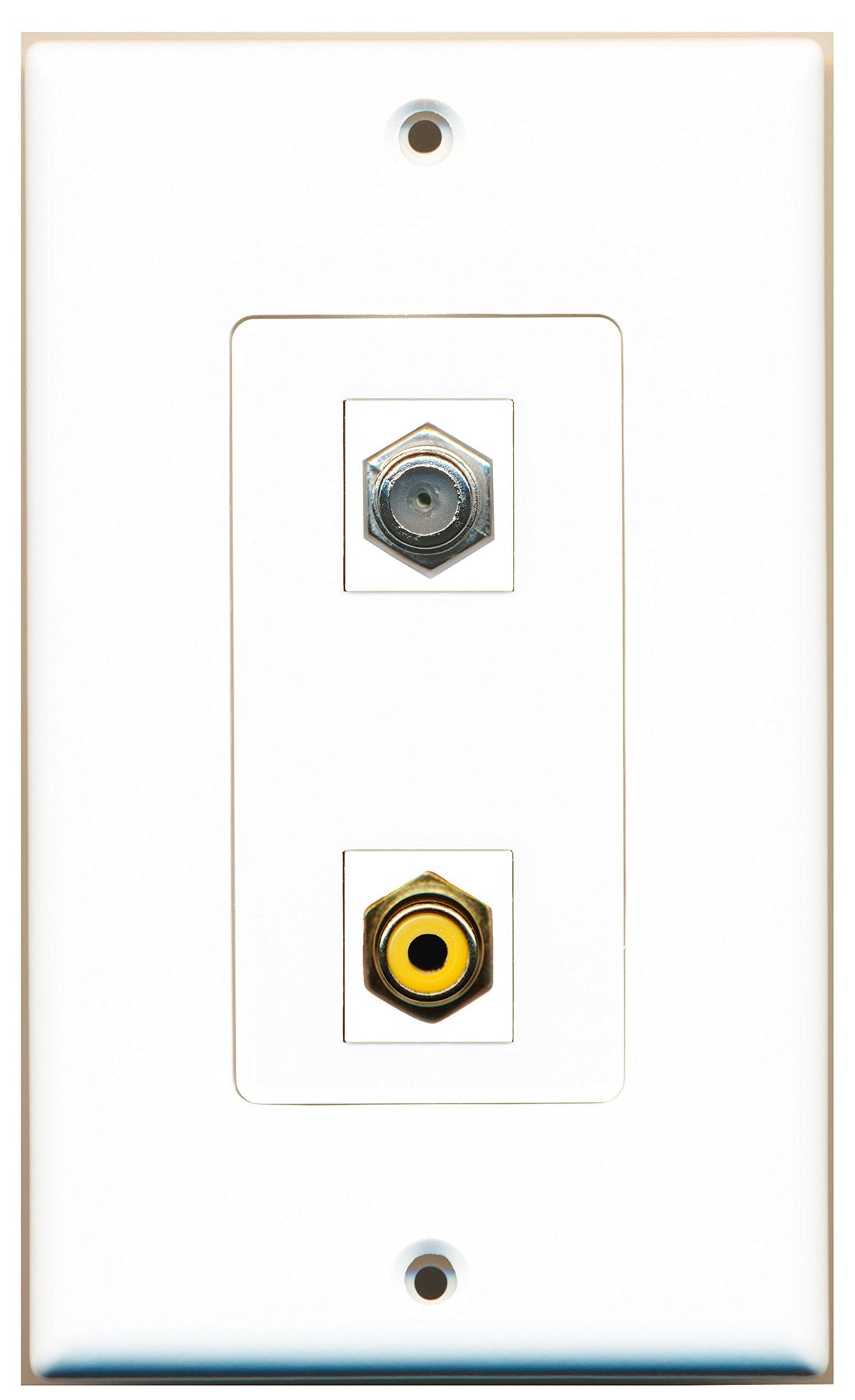 RiteAV 1 Port RCA Yellow 1 Port Coax Port Cable TV F Type Wall Plate OVERSIZED White