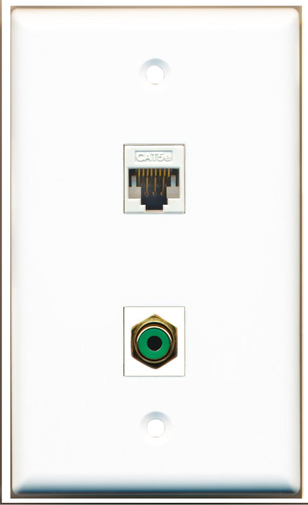 RiteAV - 1 Port RCA Green 1 Port Cat5e White Wall Plate White - Bracket Included