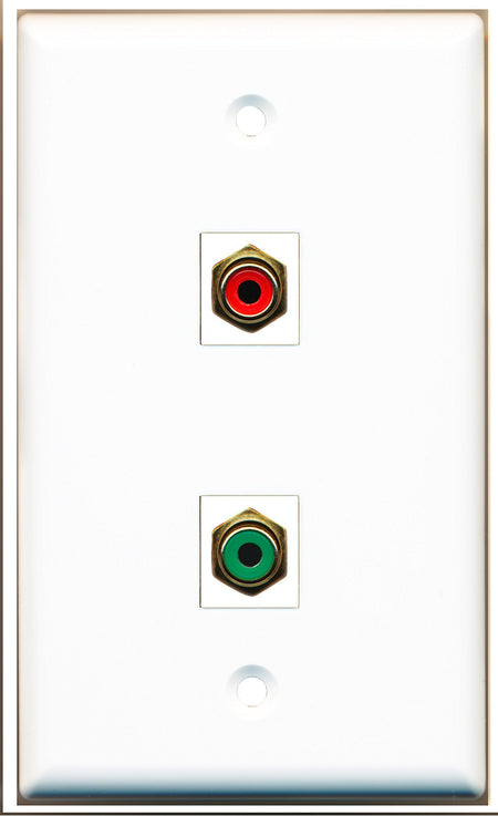 RiteAV - 1 Port RCA Red 1 Port RCA Green Wall Plate White - Bracket Included