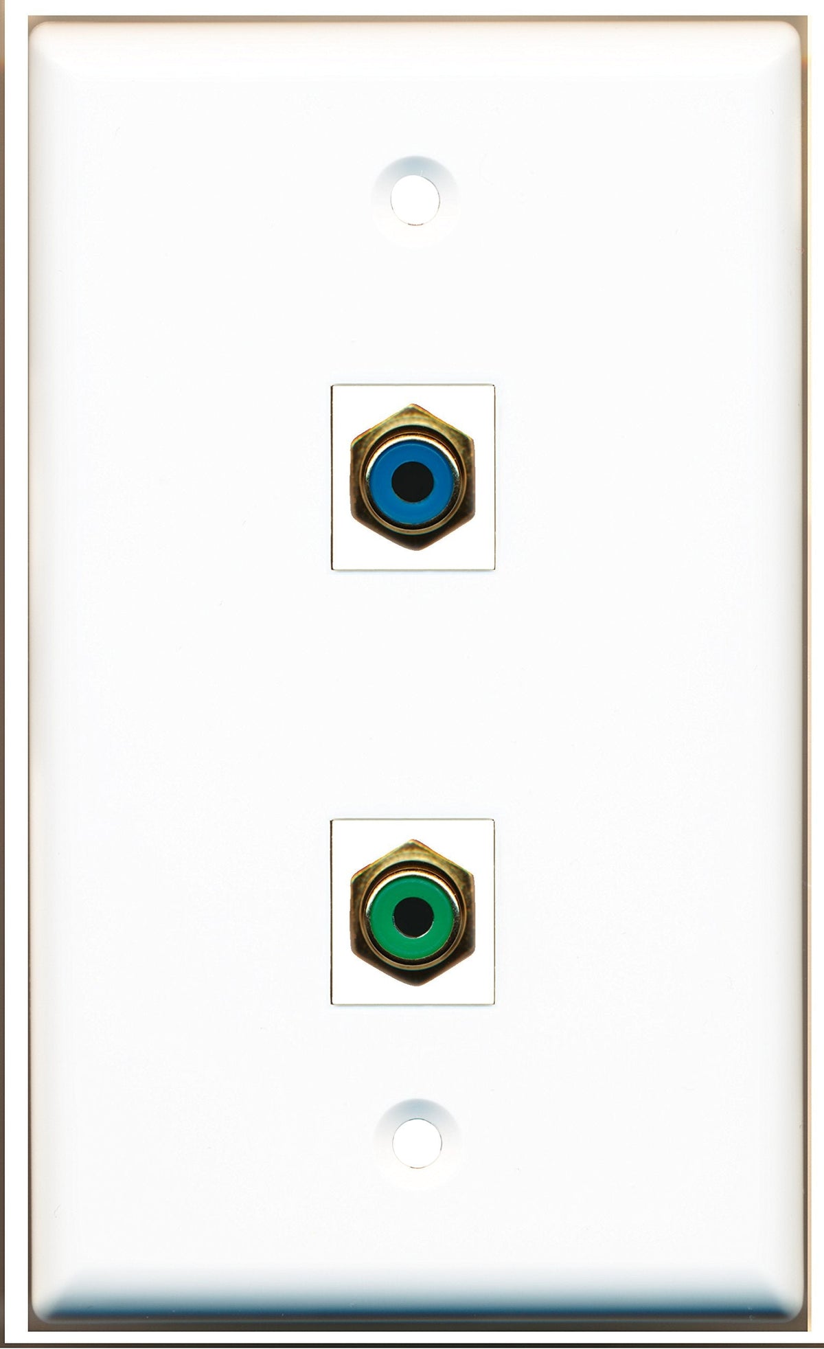 RiteAV - 1 Port RCA Green 1 Port RCA Blue Wall Plate White - Bracket Included