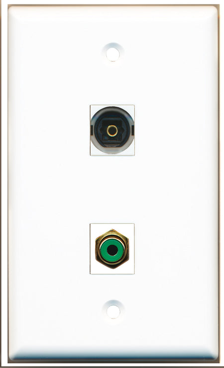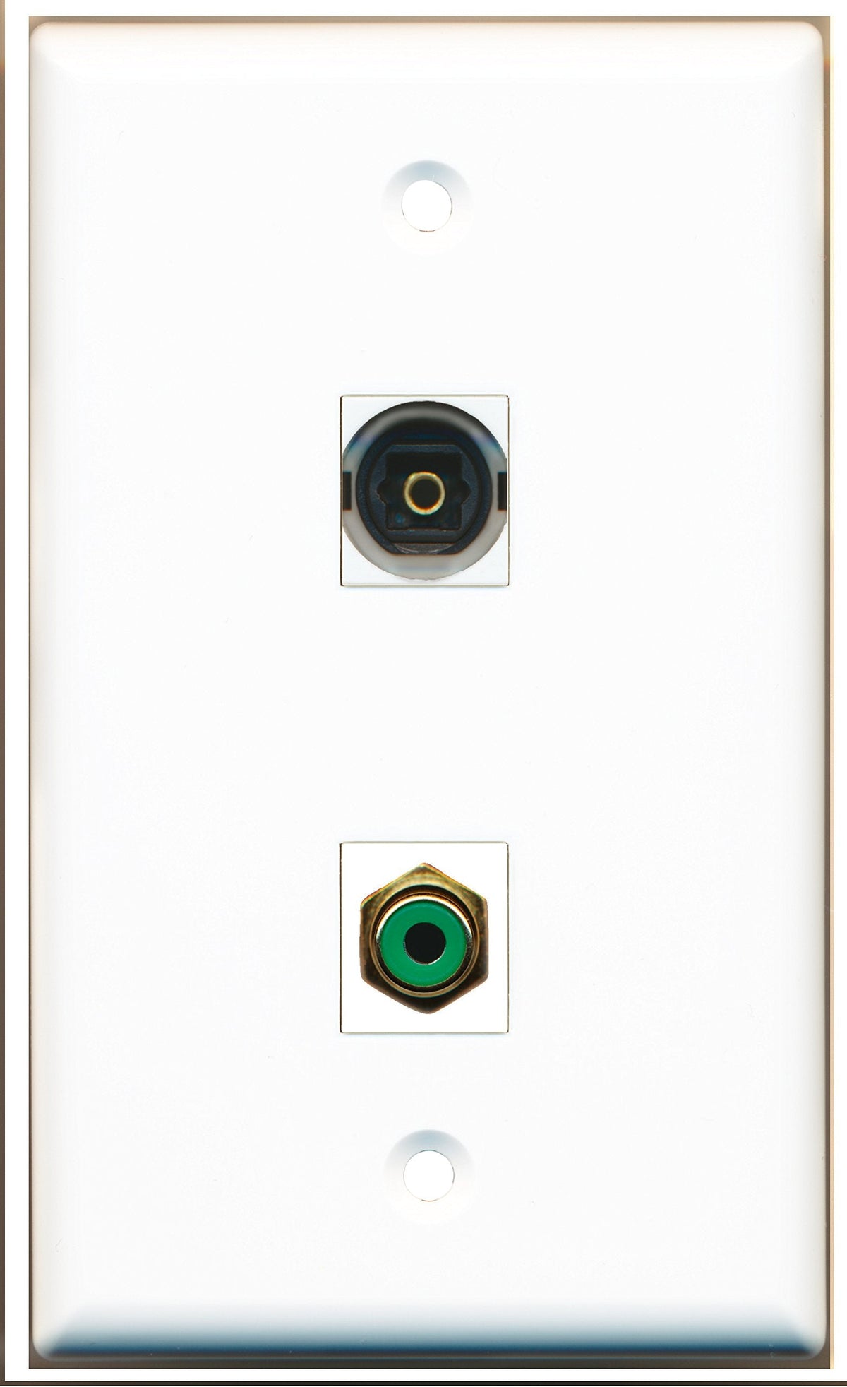 RiteAV - 1 Port RCA Green 1 Port Toslink Wall Plate White - Bracket Included