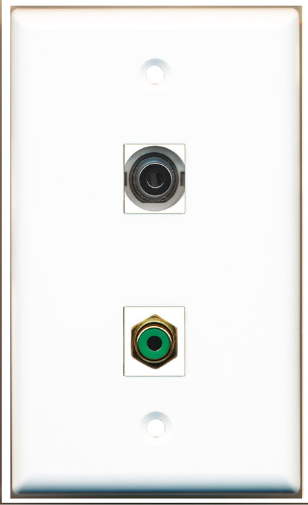 RiteAV - 1 Port RCA Green 1 Port 3.5mm Wall Plate White - Bracket Included