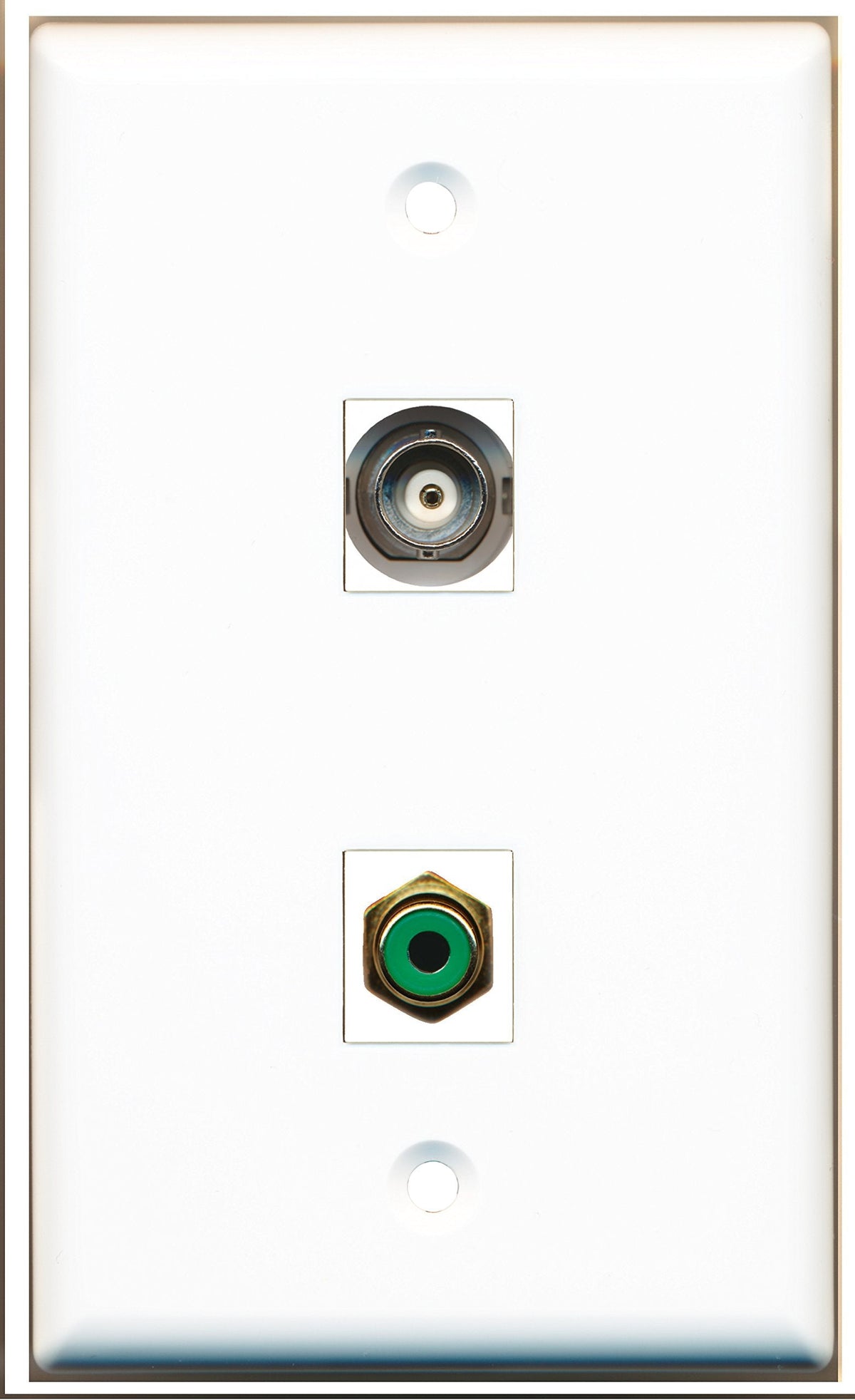 RiteAV - 1 Port RCA Green 1 Port BNC Wall Plate White - Bracket Included