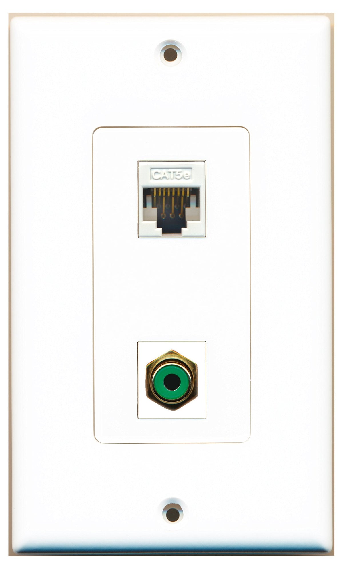 RiteAV 1 Port RCA Green 1 Port Cat5e White Wall Plate OVERSIZED White