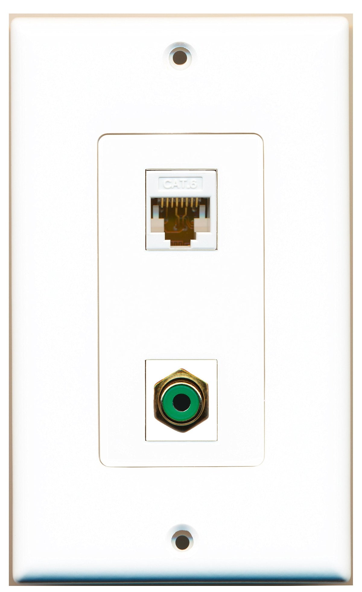RiteAV 1 Port RCA Green 1 Port Cat6 White Wall Plate OVERSIZED White