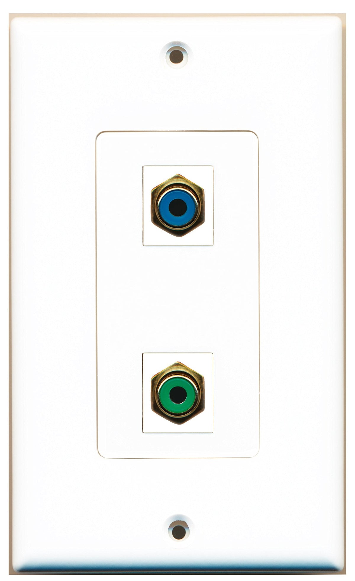 RiteAV 1 Port RCA Green 1 Port RCA Blue Wall Plate Oversized White