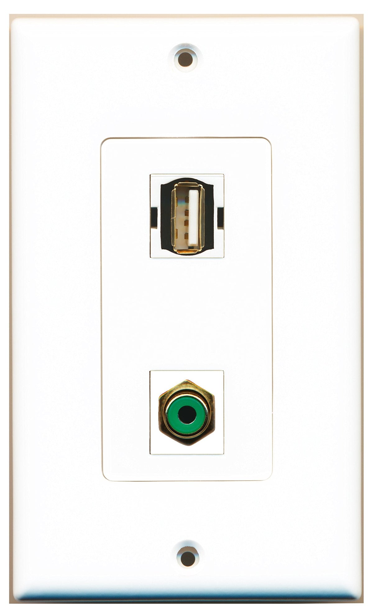RiteAV 1 Port RCA Green 1 Port USB A-A Wall Plate OVERSIZED White