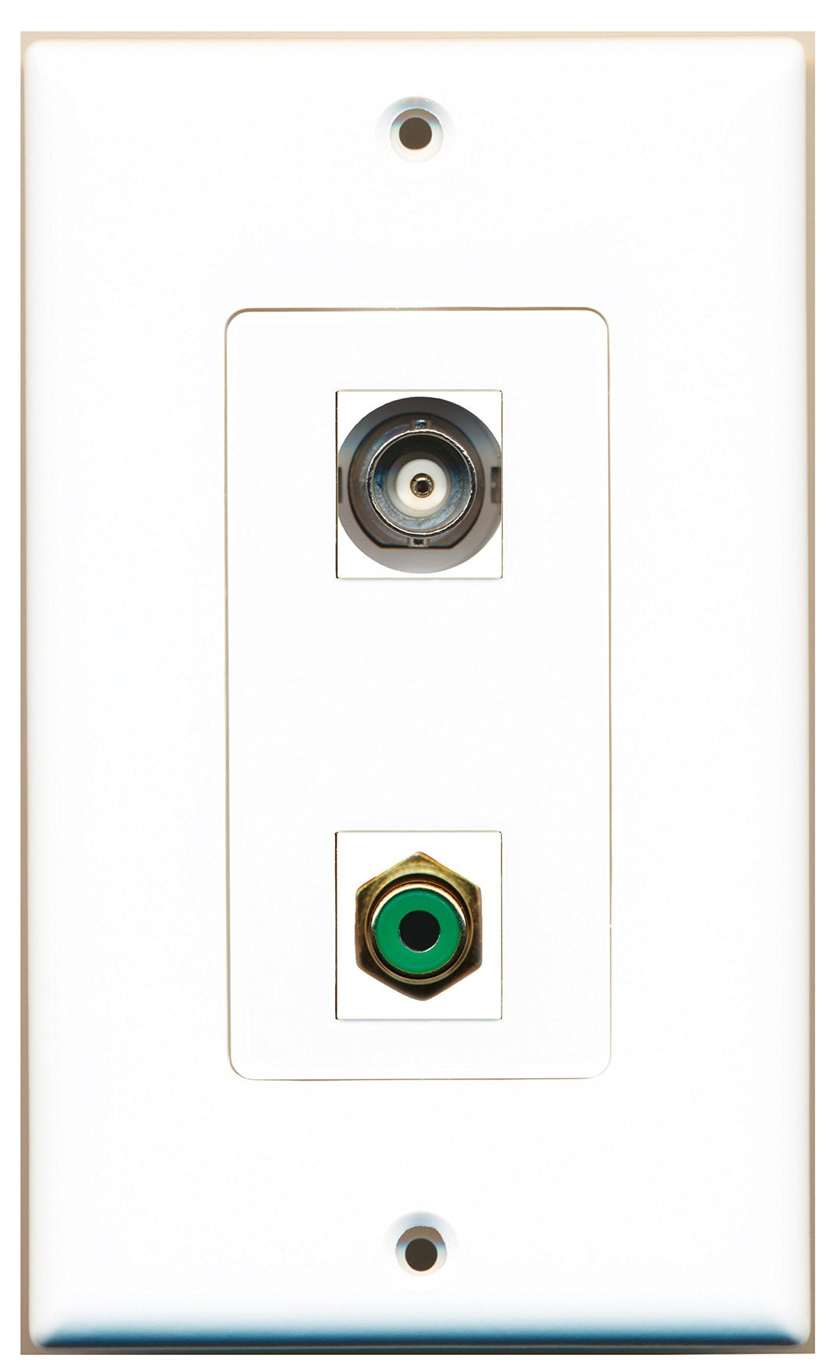 RiteAV 1 Port RCA Green 1 Port BNC Wall Plate OVERSIZED White