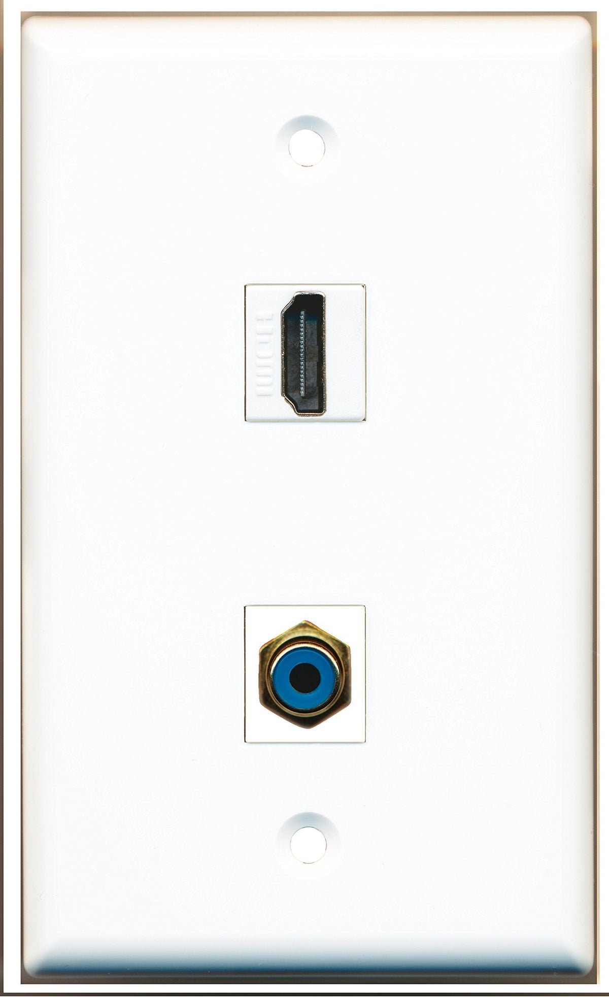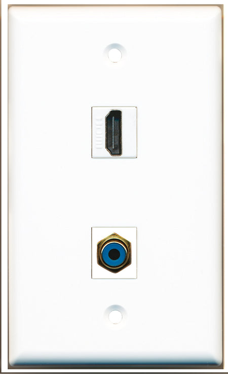 RiteAV - 1 Port HDMI 1 Port RCA Blue Wall Plate White - Bracket Included