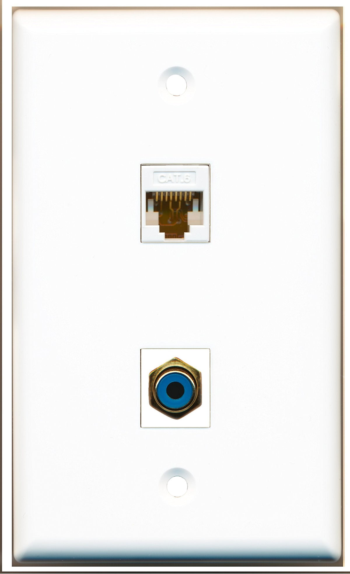 RiteAV - 1 Port RCA Blue 1 Port Cat6 White Wall Plate White - Bracket Included