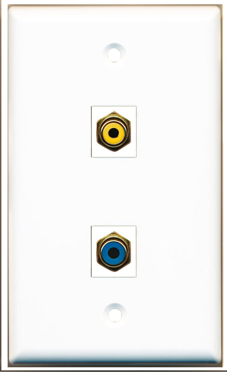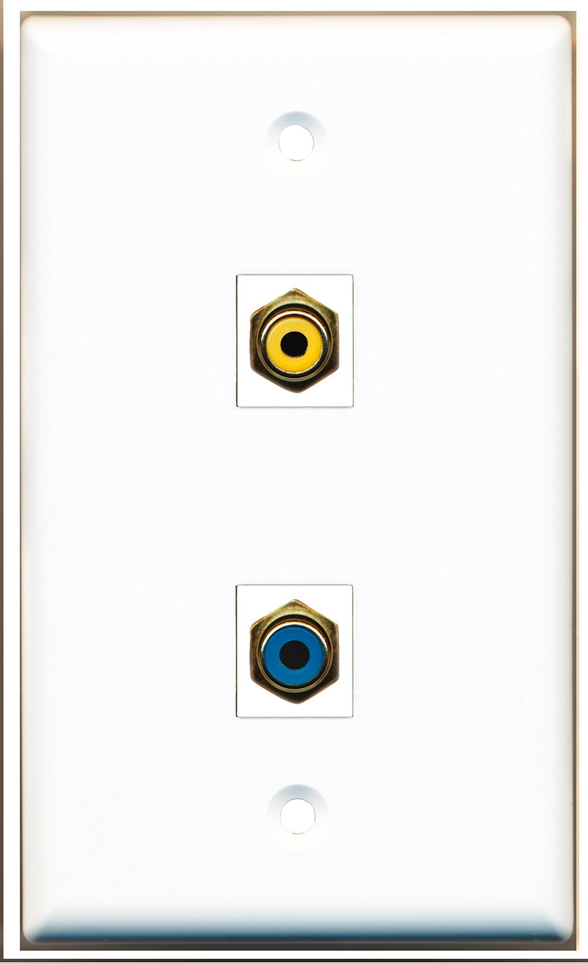 RiteAV - 1 Port RCA Yellow 1 Port RCA Blue Wall Plate White - Bracket Included