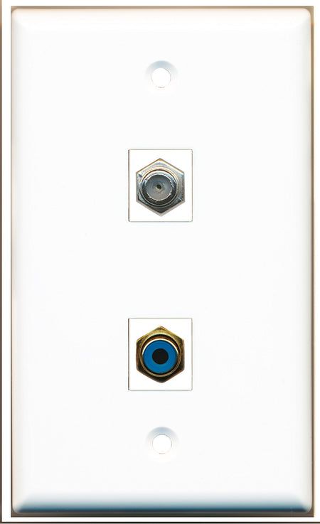 RiteAV - 1 Port RCA Blue 1 Port Coax Wall Plate White - Bracket Included
