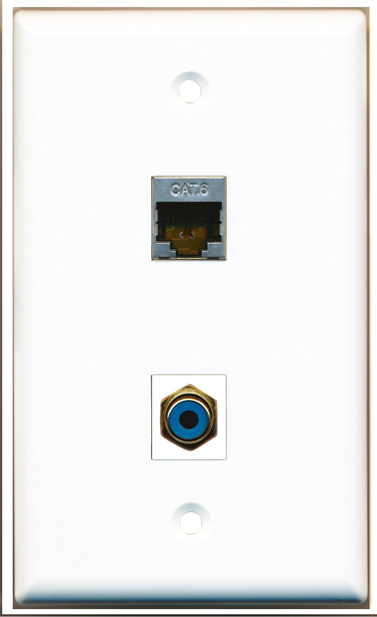 RiteAV - 1 Port RCA Blue 1 Port Shielded Cat6 Wall Plate White - Bracket Included